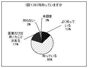 全体への設問「ECを知っていますか?」への回答は“よく知っている”と“知っている”を加えると約8割とほとん どの企業がECを知っていることがわかります。(図1)