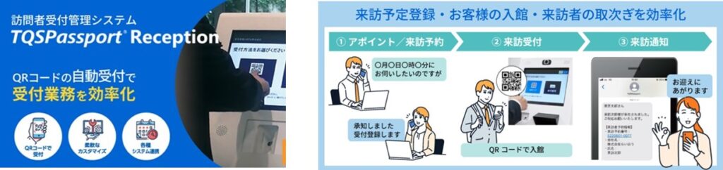 QRコードでスピーディーにかんたんに来訪者の管理ができる受付システムです。 受付の無人化、本人確認や在館者の安否確認まで、受付業務の課題を一気に解決。