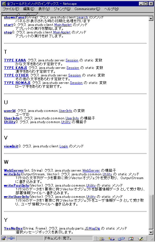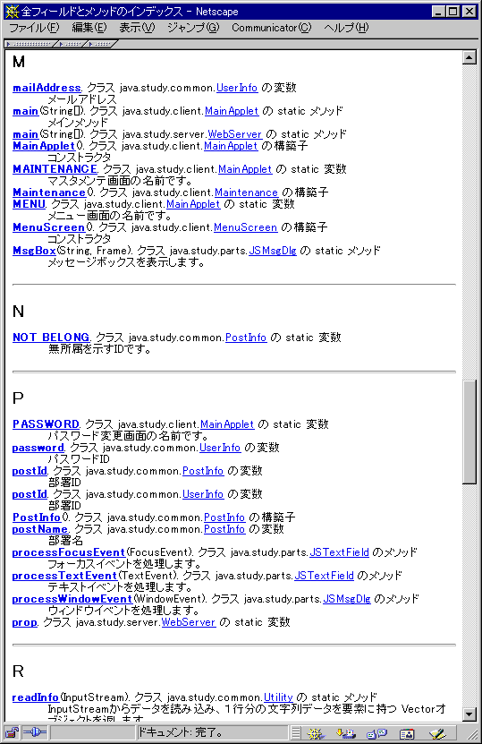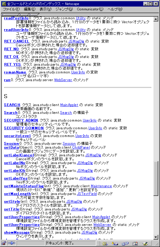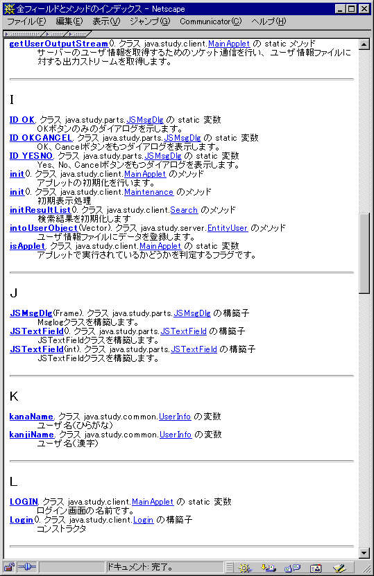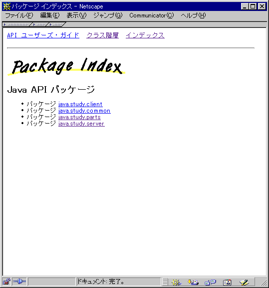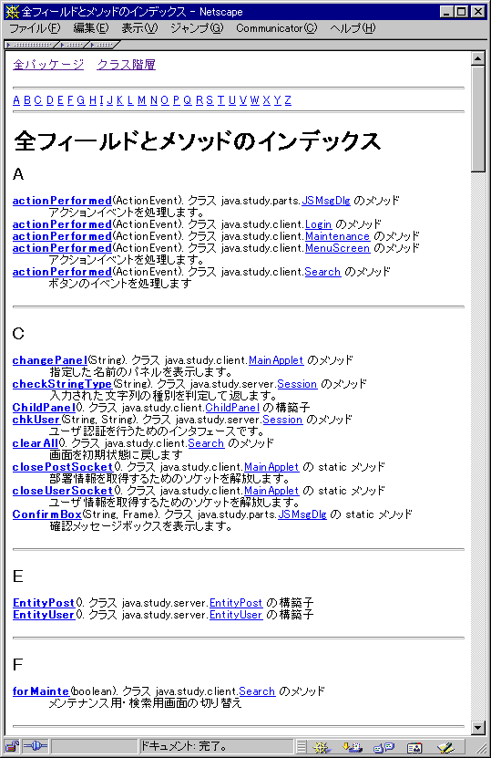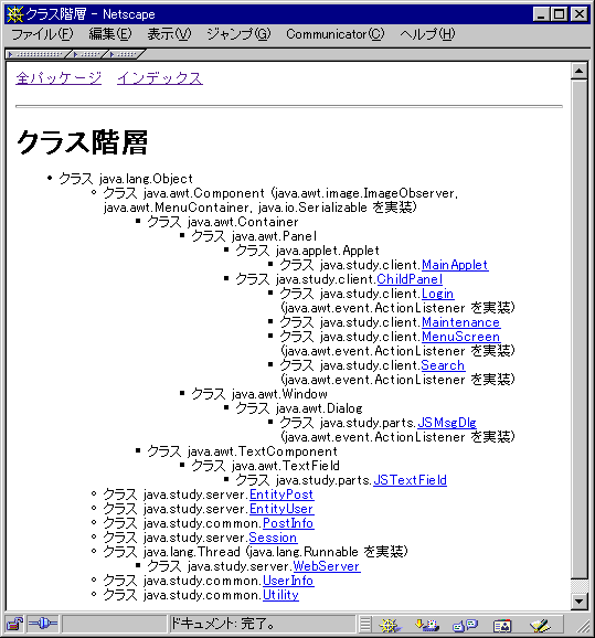 JavaDoc出力例(パッケージ一覧・クラス階層・全フィールドおよびメソッドインデックス)